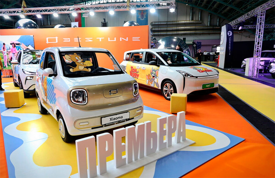 Одна из самых ярких и «няшных» локаций – это компании «ФелОкт». Здесь привлекали внимание детей и женщин несколько интересных новинок: электрические «малыши» FAW Bestune Xiaoma (от 27 900 BYN) и Leapmotor T03 (от 41 880 BYN). Хочется также отметить электромобиль FAW Bestune JoyEE 03 с наибольшим заявленным запасом хода в своем классе (до 565 км.).