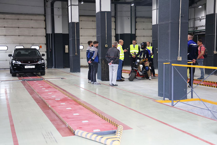 Вниманию Александра Бурака был представлен ход проведения испытаний, включая идентификацию устройства, его внешний осмотр на соответствие установленным признакам к категориям, а также измерения скорости, массы и мощности.